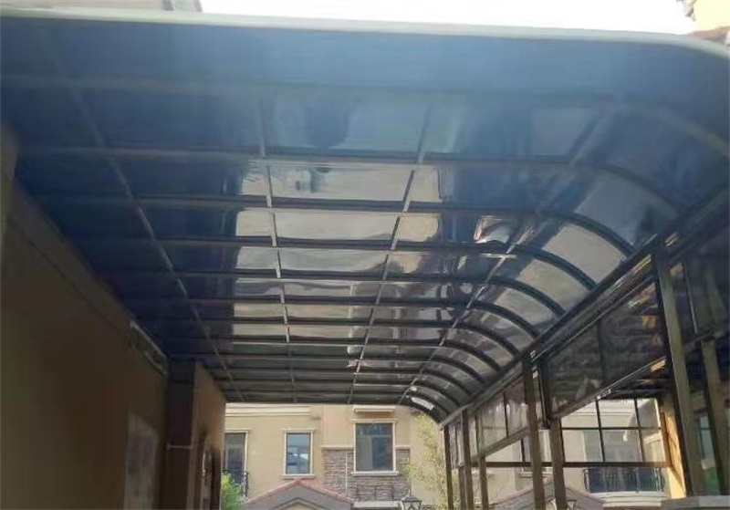 款式型號:LT25-50 ?PC耐力板頂頂棚-波浪款。  Style and model: LT25-50 PC endurance board roof - wave style.  雨棚主要材質:不銹鋼龍骨、高強度2mm厚度PC耐力板、專用鋁合金固定腳杯、工具等。  Main materials of the canopy: stainless steel keel, high-strength 2mm thick PC enduran...